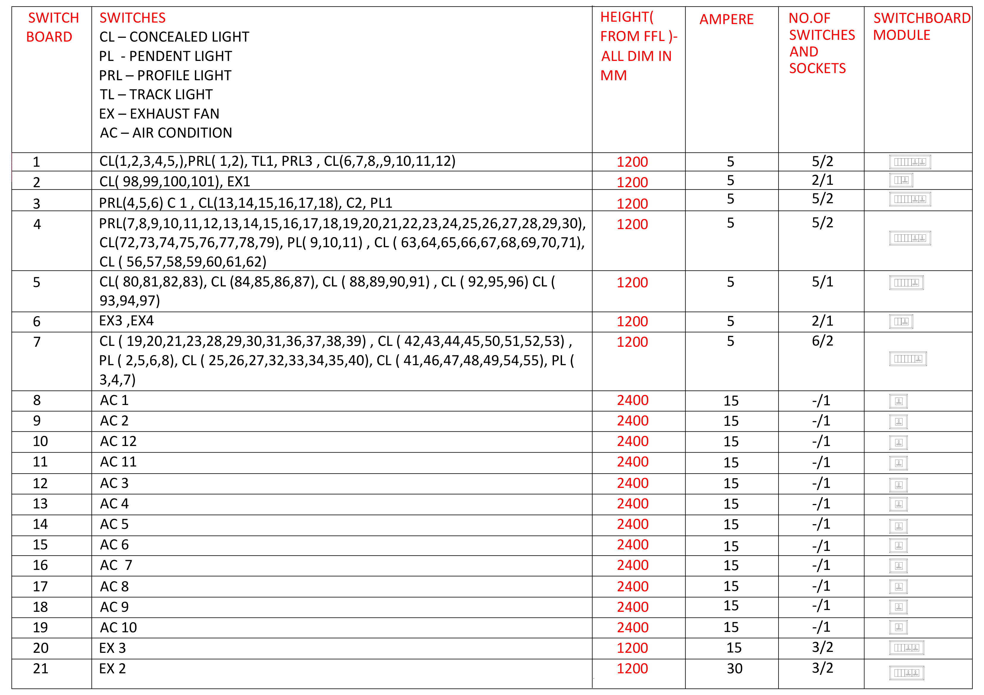 electrical schedule