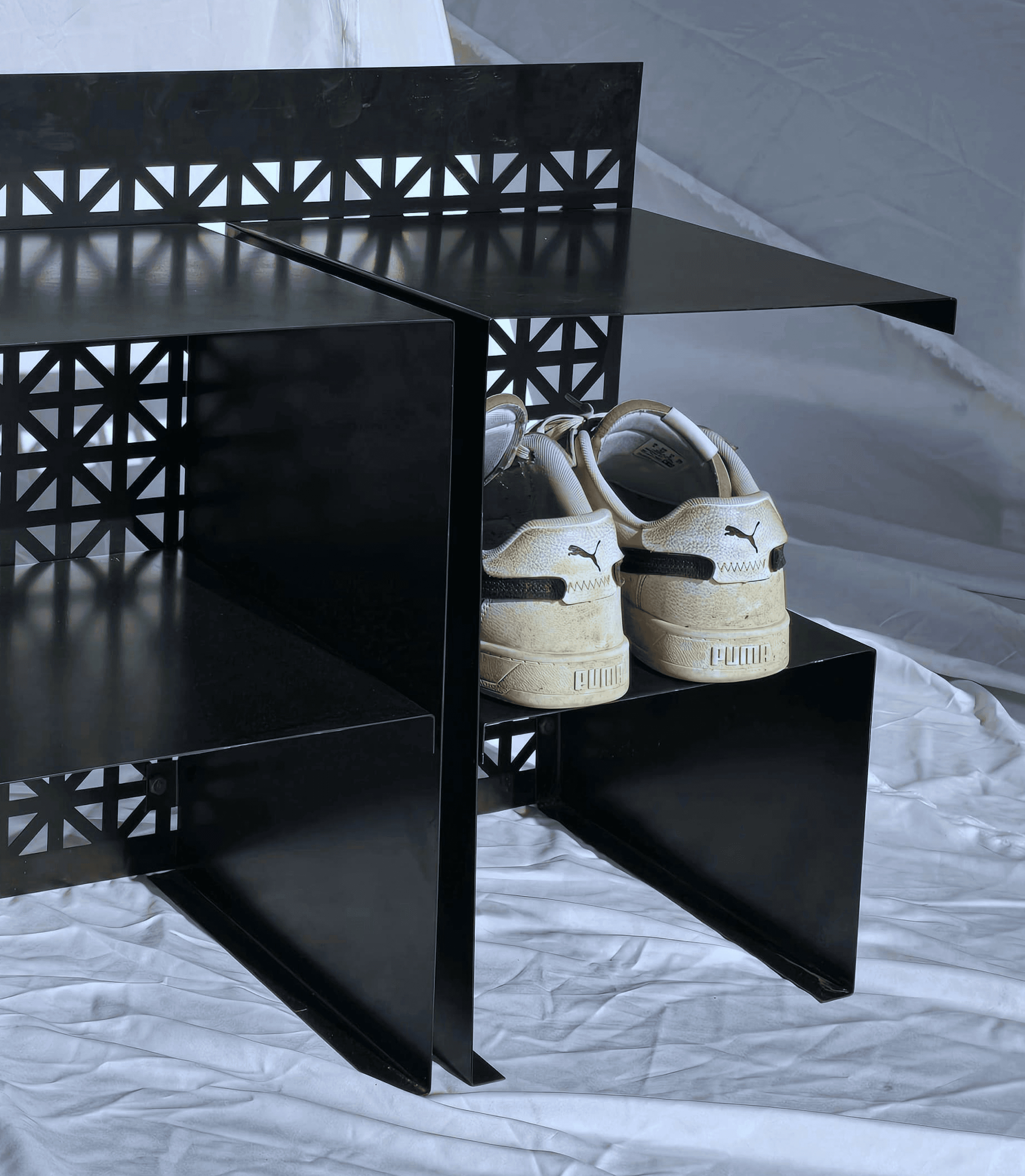 TaraTali is a combination of two words: “Tara” which means “steel” and “Tali” which means “rack” or “shelf” in Hindi. So, “TaraTali” essentially translates to “steel rack” or “steel shelf”. A modern metal shoe rack engineered to store up to six pairs of footwear. Its unique jali design not only enhances aesthetics but also promotes airflow, keeping your shoes fresh.