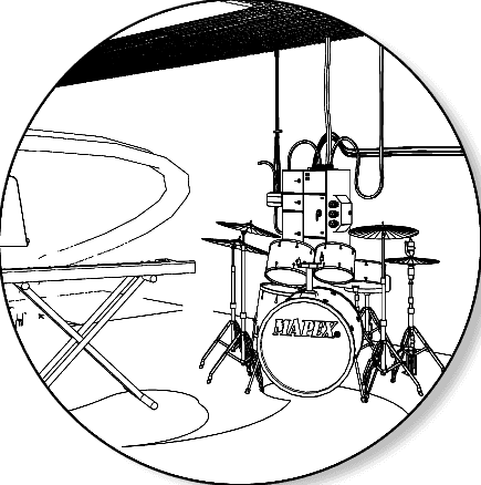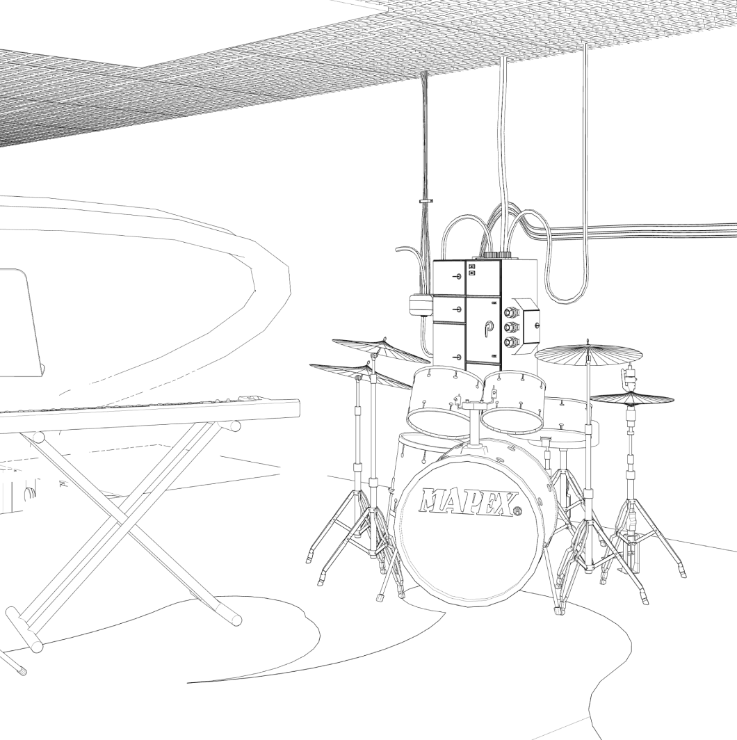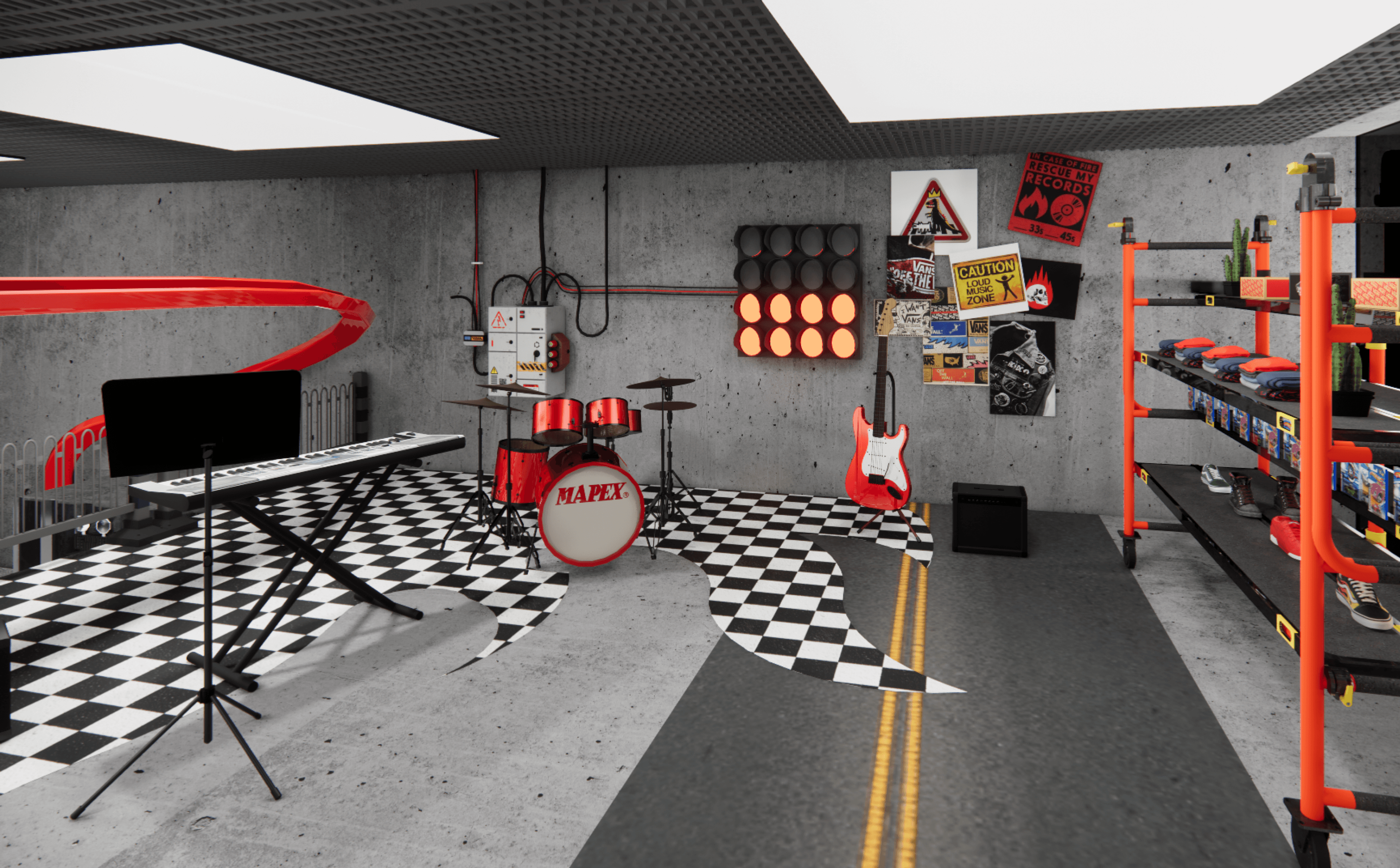 A high-energy music and promo zone with a live band, interactive sound stations, and electrifying performances.